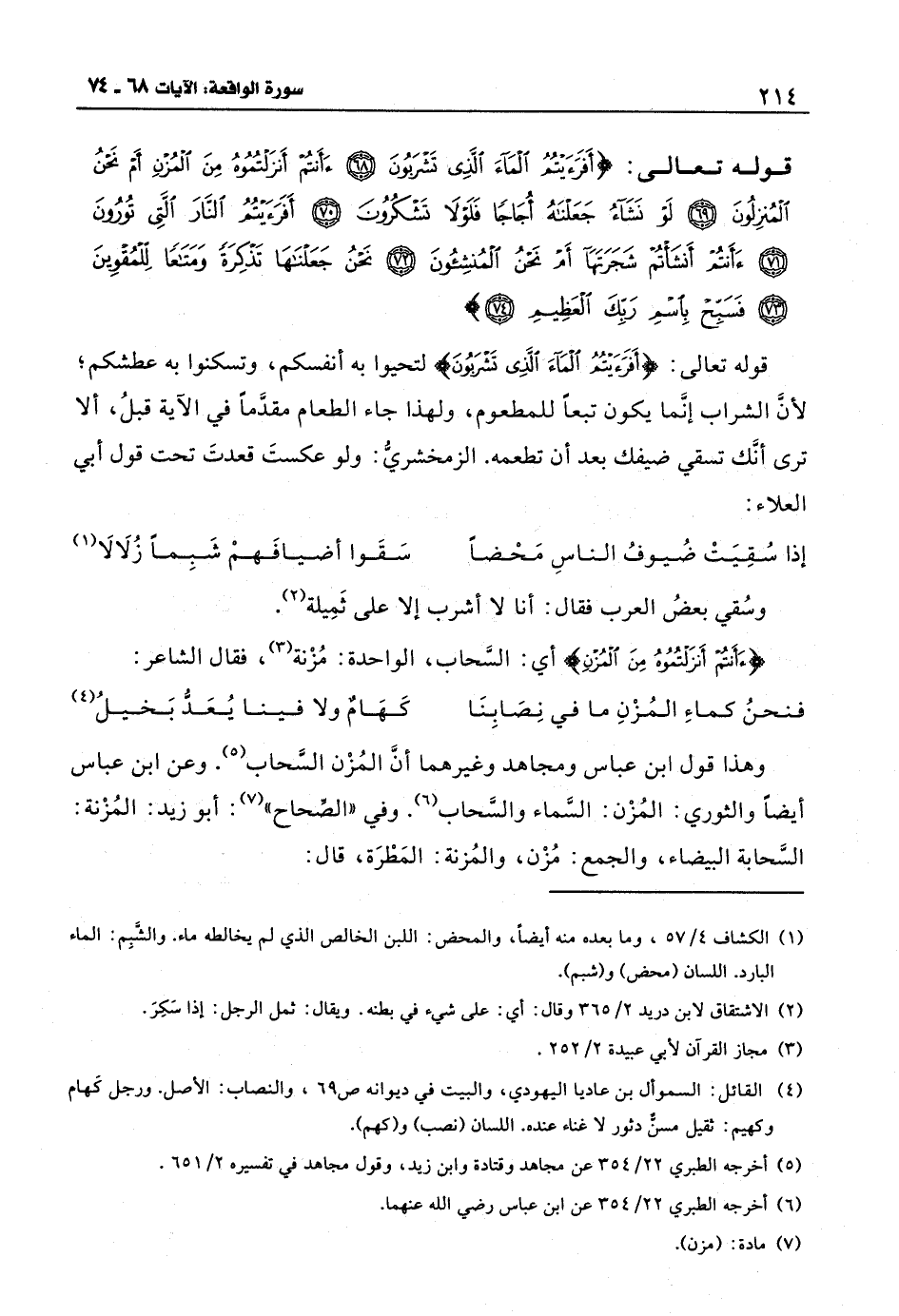 عَرَبٌ نَرَى لِلَّهِ مِنْ أَمْوَالِنَا ... حَقُّ الزَّكَاةِ مُنَزَّلًا تَنْزِيلَا