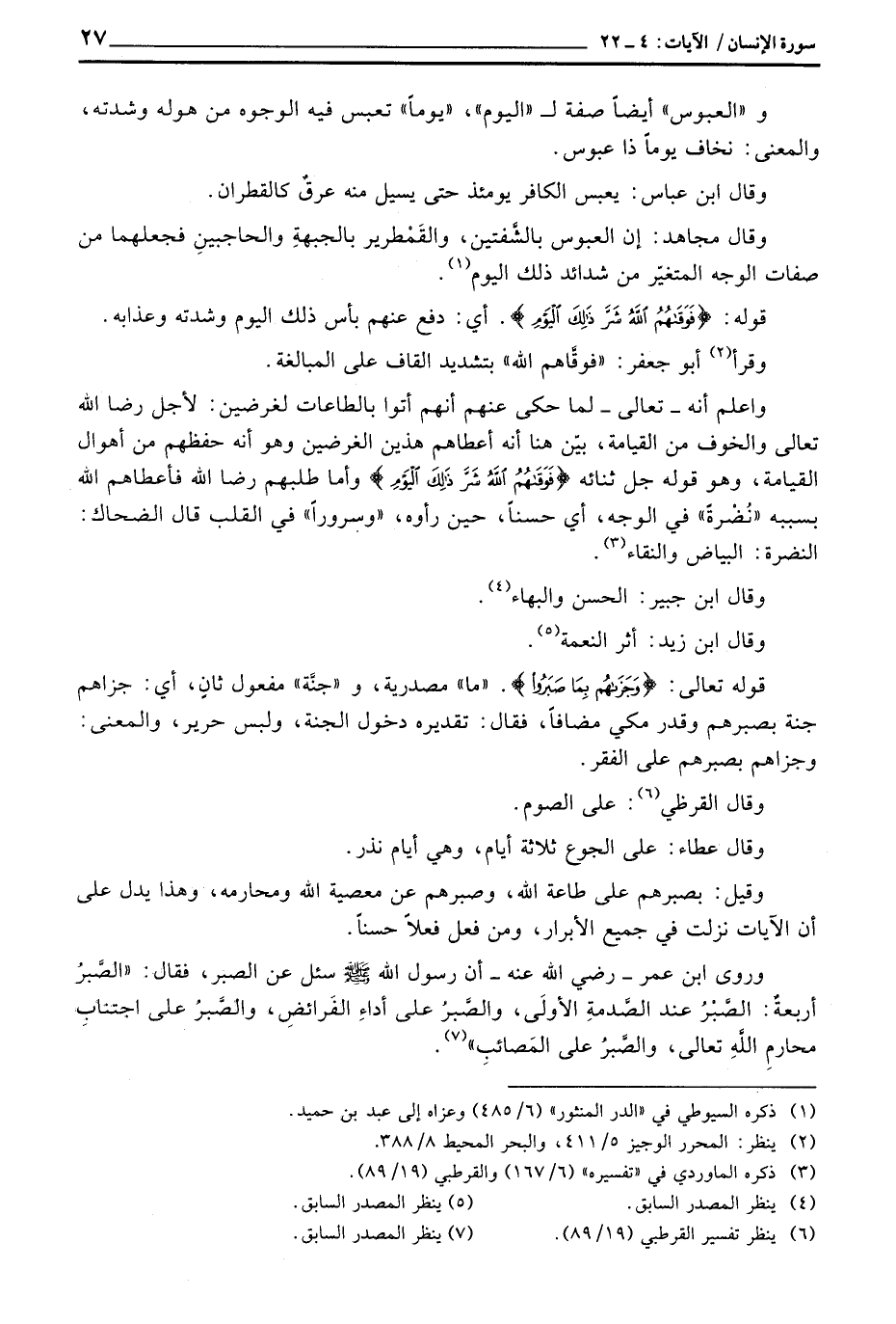 وقيل: بصبرهم على طاعة الله، وصبرهم عن معصية الله ومحارمه، وهذا يدل على أن الآيات نزلت في جميع الأبرار، ومن فعل فعلاً حسناً.