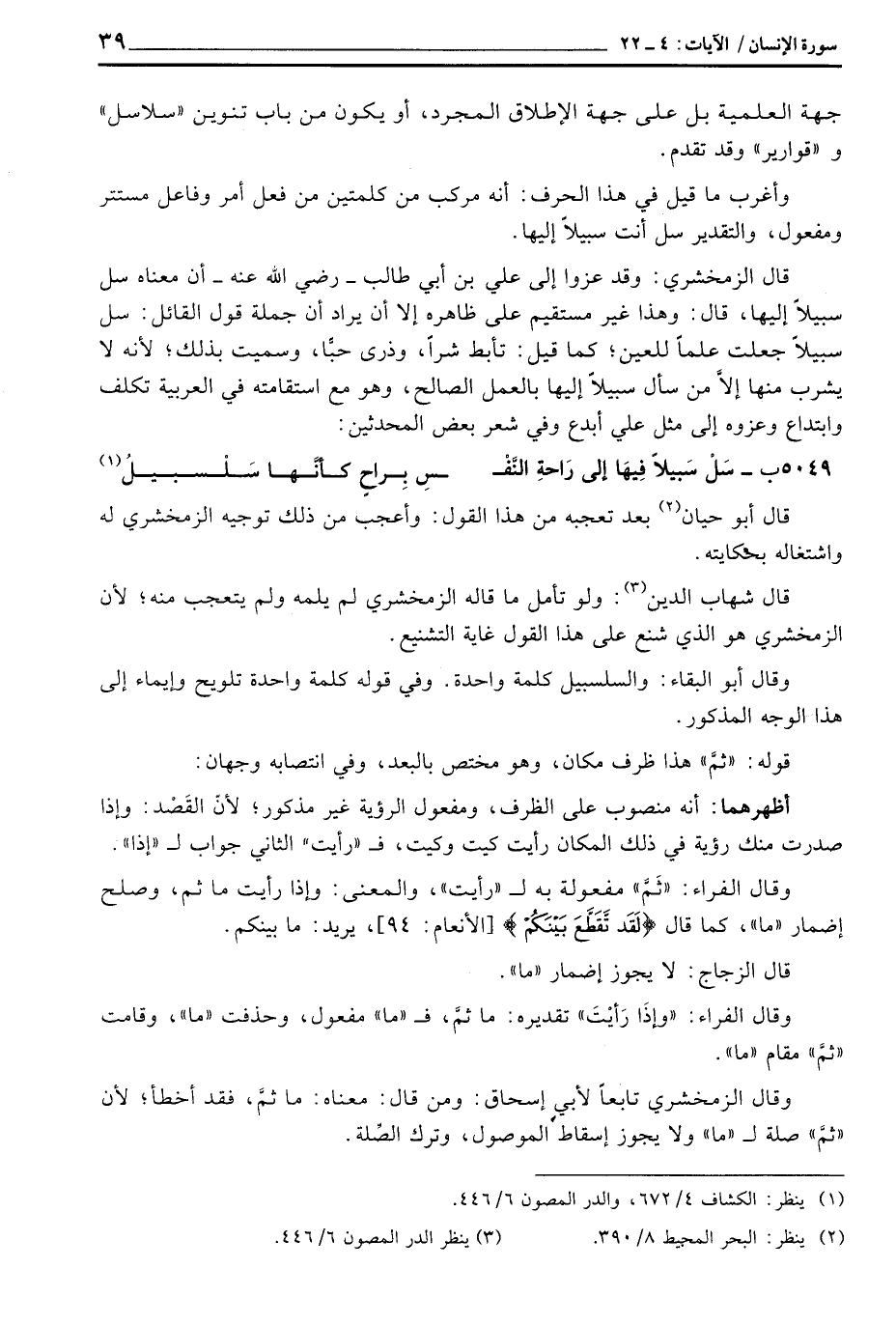 قال شهاب الدين: ولو تأمل ما قاله الزمخشري لم يلمه ولم يتعجب مه؛ لأن الزمخشري هو الذي شنع على هذا القول غاية التشنيع.