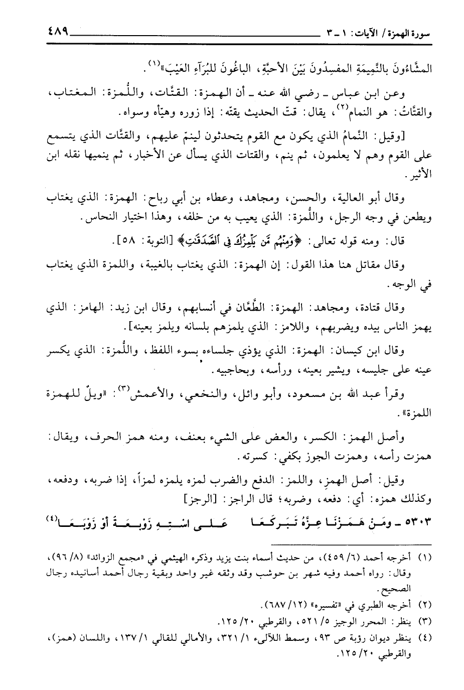 وعن ابن عباس - رَضِيَ اللَّهُ عَنْه - أن الهمزة: القتَّات، واللُّمزة: المغتاب، والقتَّاتُ: هو النمام، يقال: قتّ الحديث يقتّه: إذا زوره وهيّأه وسواه.