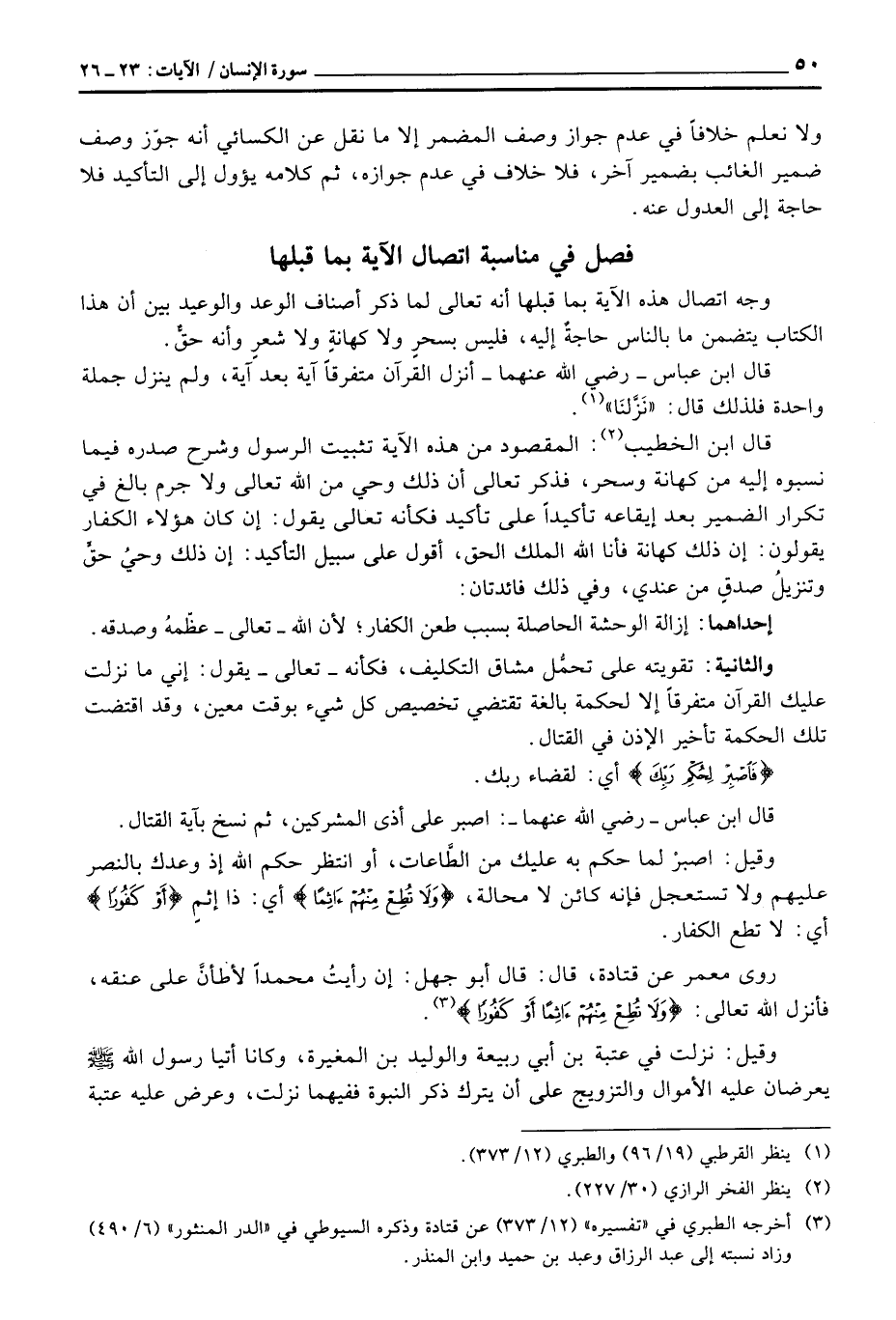 وقيل: اصبرْ لما حكم به عليك من الطَّاعات، أو انتظر حكم الله إذ وعدك بالنصر عليهم ولا تستعجل فإنه كائن لا محالة، {وَلاَ تُطِعْ مِنْهُمْ آثِماً} أي: ذا إثمٍ {أَوْ كَفُوراً} أي: لا تطع الكفار.