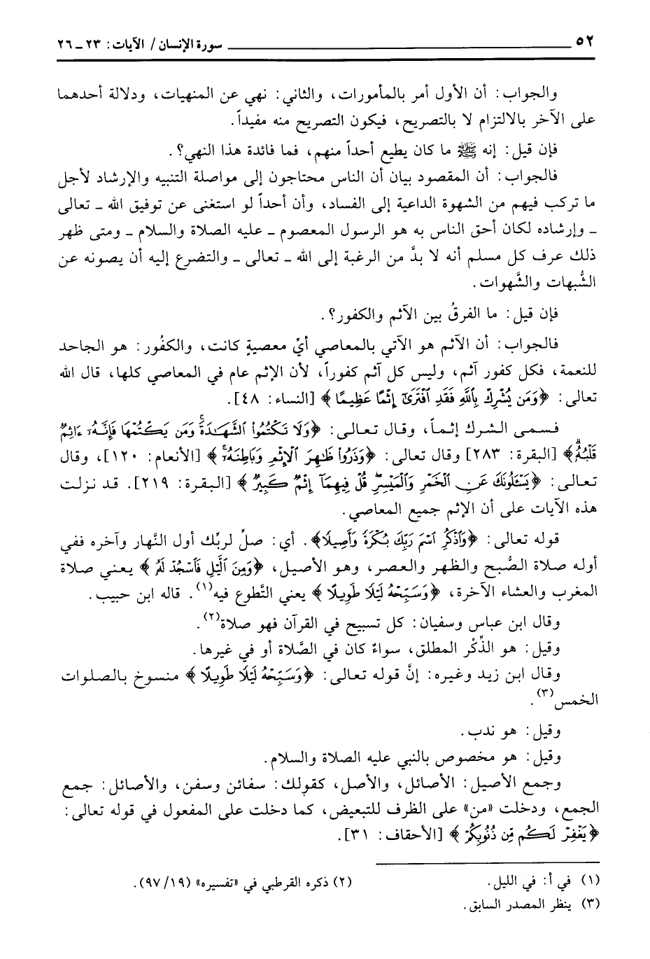 فالجواب: أن الآثم هو الآتي بالمعاصي أيِّ معصيةٍ كانت، والكفُور: هو الجاحد للنعمة، فكل كفور آثم، وليس كل آثم كفوراً، لأن الإثم عام في المعاصي كلها، قال الله تعالى: {وَمَن يُشْرِكْ بالله فَقَدِ افترى إِثْماً عَظِيماً} [النساء: 48] .