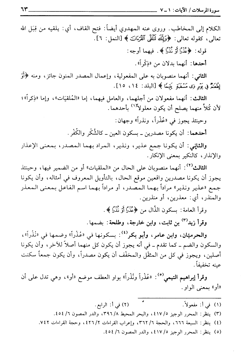 الثالث: أنهما منصوبان على الحال من «الملقيات» أو من الضمير فيها، وحينئذ يجوز أن يكونا مصدرين واقعين موقع الحال، بالتأويل المعروف في أمثاله، وأن يكونا جمع «عذير ونذير» مراداً بهما المصدر، أو مراداً بهما اسم الفاعل بمعنى المعذر والمنذر، أي: معذرين، أو منذرين.