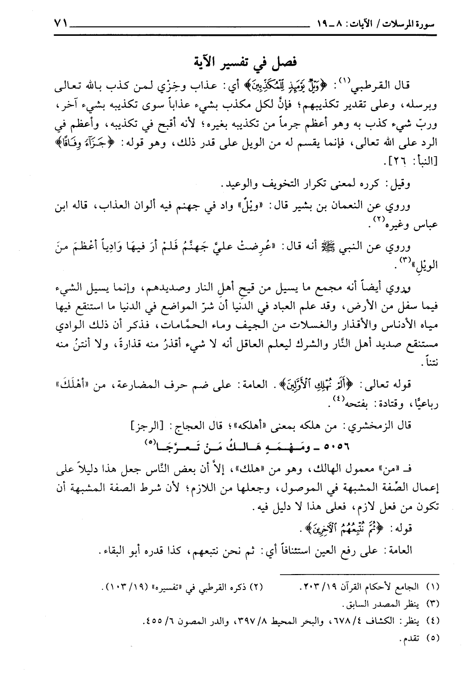 قال القرطبي: {وَيْلٌ يَوْمَئِذٍ لِّلْمُكَذِّبِينَ} أي: عذاب وخِزْي لمن كذب بالله تعالى وبرسله، وعلى تقدير تكذيبهم؛ فإنَّ لكل مكذب بشيء سوى تكذيبه بشيء آخر، وربّ شيء كذب به وهو أعظم جرماً من تكذيبه بغيره؛ لأنه أقبح في تكذيبه، وأعظم في الرد على الله تعالى، فإنما يقسم له من الويل على قدر ذلك، وهو قوله: {جَزَآءً وِفَاقاً} [النبأ: 26] .