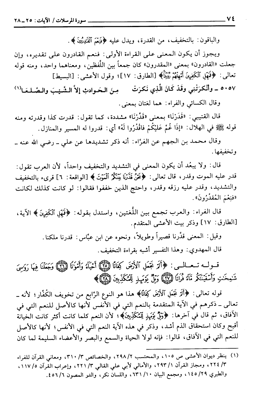 ويجوزُ أن يكون المعنى على القراءة الأولى: فنعم القادرون على تقديره: وإن جعلت «القادرون» بمعنى «المقدرون» كان جمعاً بين اللَّفظين، ومعناهما واحد، ومنه قوله تعالى: {فَمَهِّلِ الكافرين أَمْهِلْهُمْ رُوَيْداً} [الطارق: 17] ؛ وقول الأعشى: [البسيط]