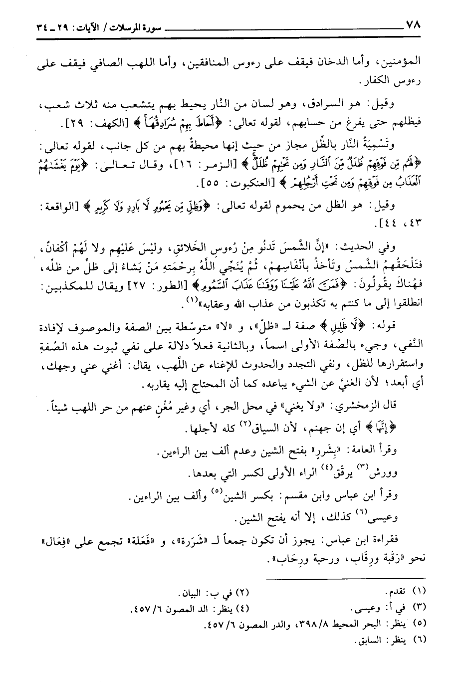 وفي الحديث: «إنَّ الشَّمسَ تَدنُو مِنْ رُءوسِ الخَلائقِ، وليْسَ عَلَيْهِم ولا لَهُمْ أكْفانٌ، فتَلْحَقُهمُ الشَّمْسُ وتَأخذُ بأنْفَاسِهمْ، ثُمَّ يُنَجِّي اللهُ بِرحْمَتهِ مَنْ يَشَاءُ إلى ظلِّ من ظلِّه، فهُناكَ يقُولُونَ: {فَمَنَّ الله عَلَيْنَا وَوَقَانَا عَذَابَ السموم} [الطور: 27] ويقال للمذكبين: انطلقوا إلى ما كنتم به تكذبون من عذاب الله وعقابه» .