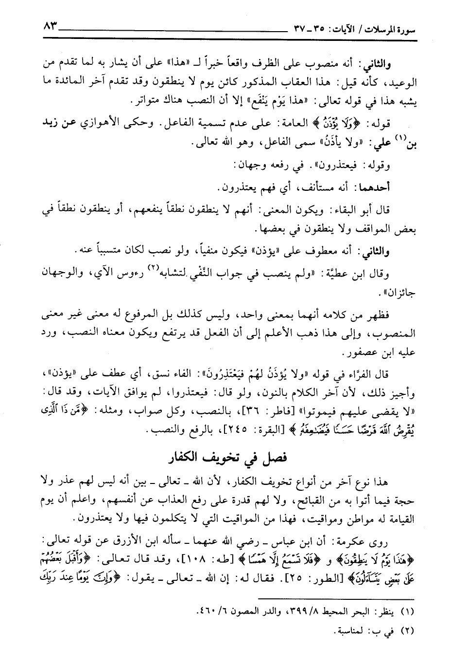 والثاني: أنه معطوف على» يؤذن «فيكون منفياً، ولو نصب لكان متسبباً عنه.