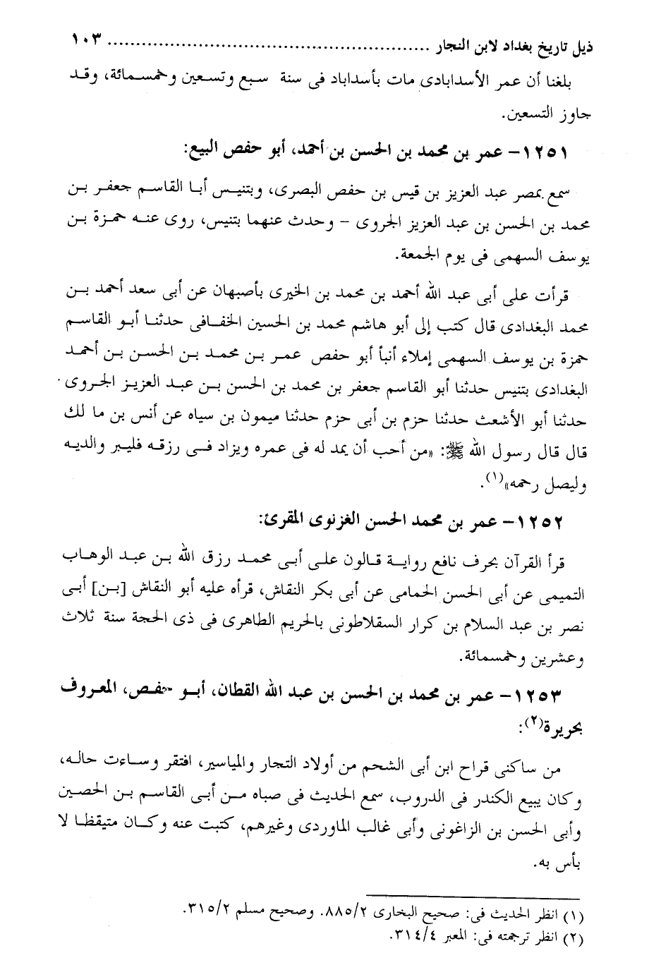 1253- عمر بْن مُحَمَّدِ بْنِ الْحَسَن بْن عَبْد اللَّهِ القطان، أبو حفص، المعروف بحريرة [2] :
