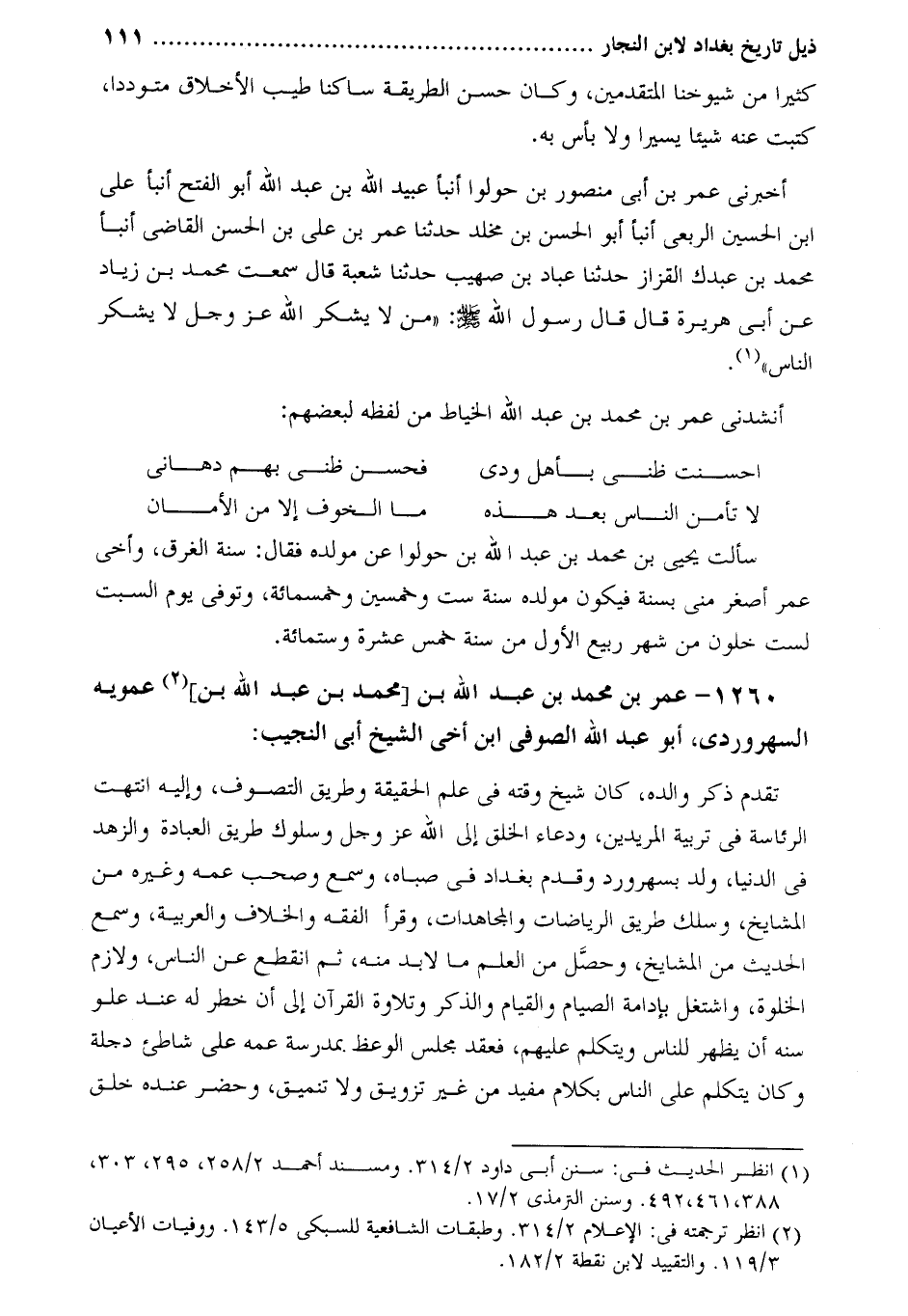 1260- عُمَرُ بْنُ مُحَمَّدِ بْنِ عَبْدِ اللَّهِ بْنِ [مُحَمَّد بْنِ عبد الله بن] [2] عمويه السهروردي، أبو عبد الله الصوفي ابن أخى الشيخ أبى النجيب: