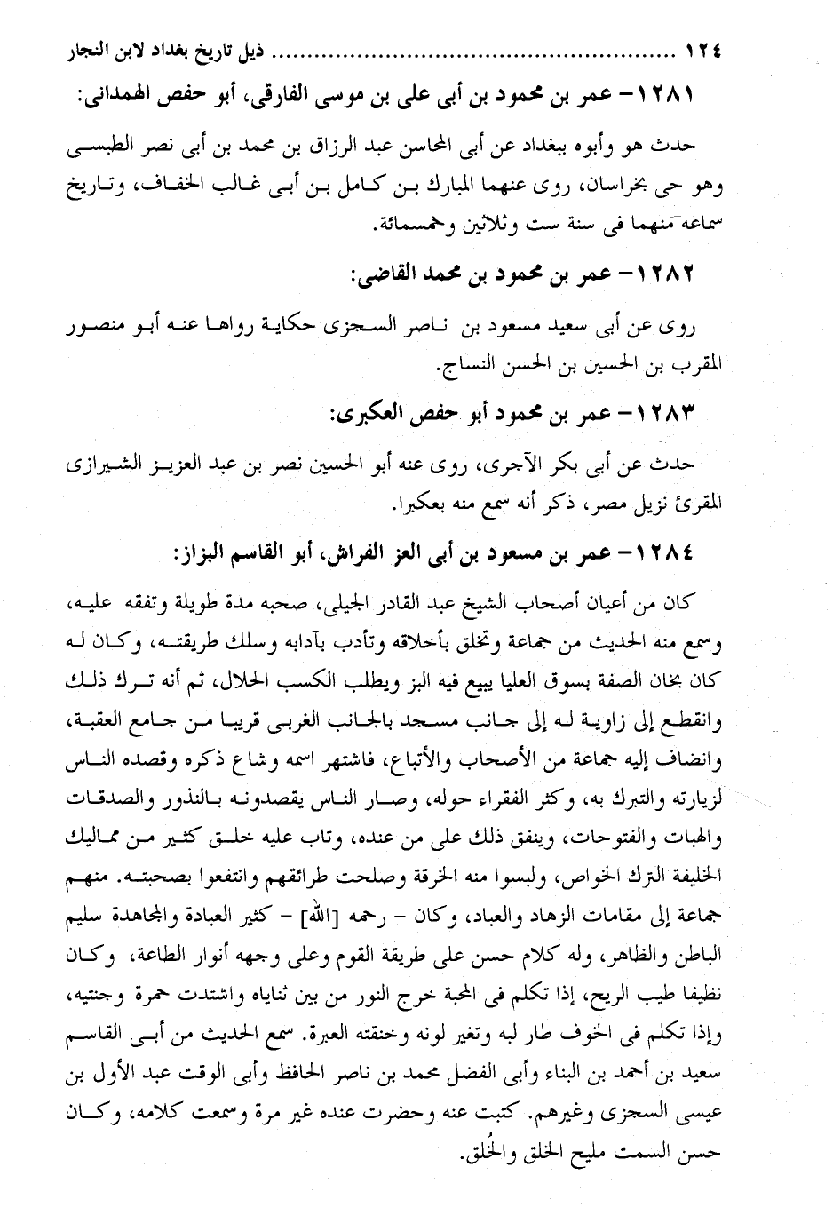 1281- عمر بن محمود بن أبى على بن موسى الفارقي، أبو حفص الهمداني: