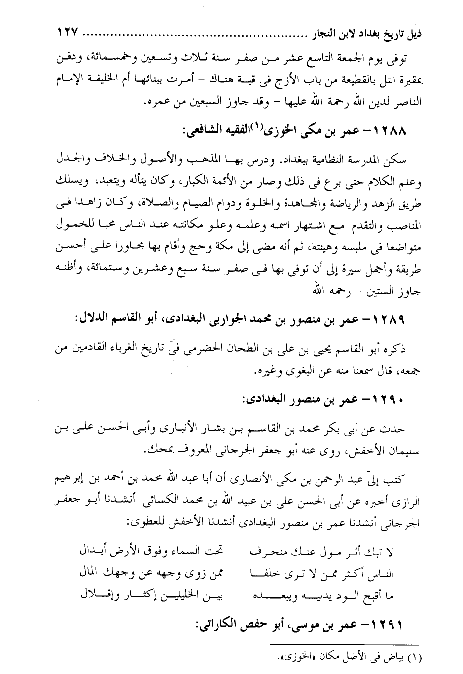 1288- عمر بن مكي الخوزي [1] الفقيه الشافعي: