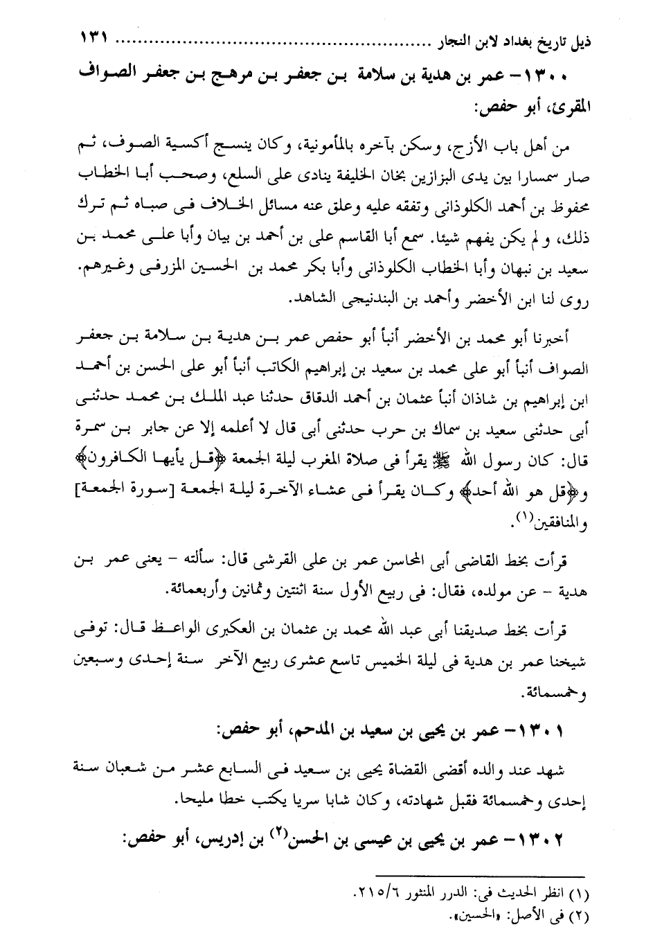 1302- عمر بْن يَحيى بْن عِيسَى بْن الْحَسَن [2] بْن إدريس، أبو حفص:
