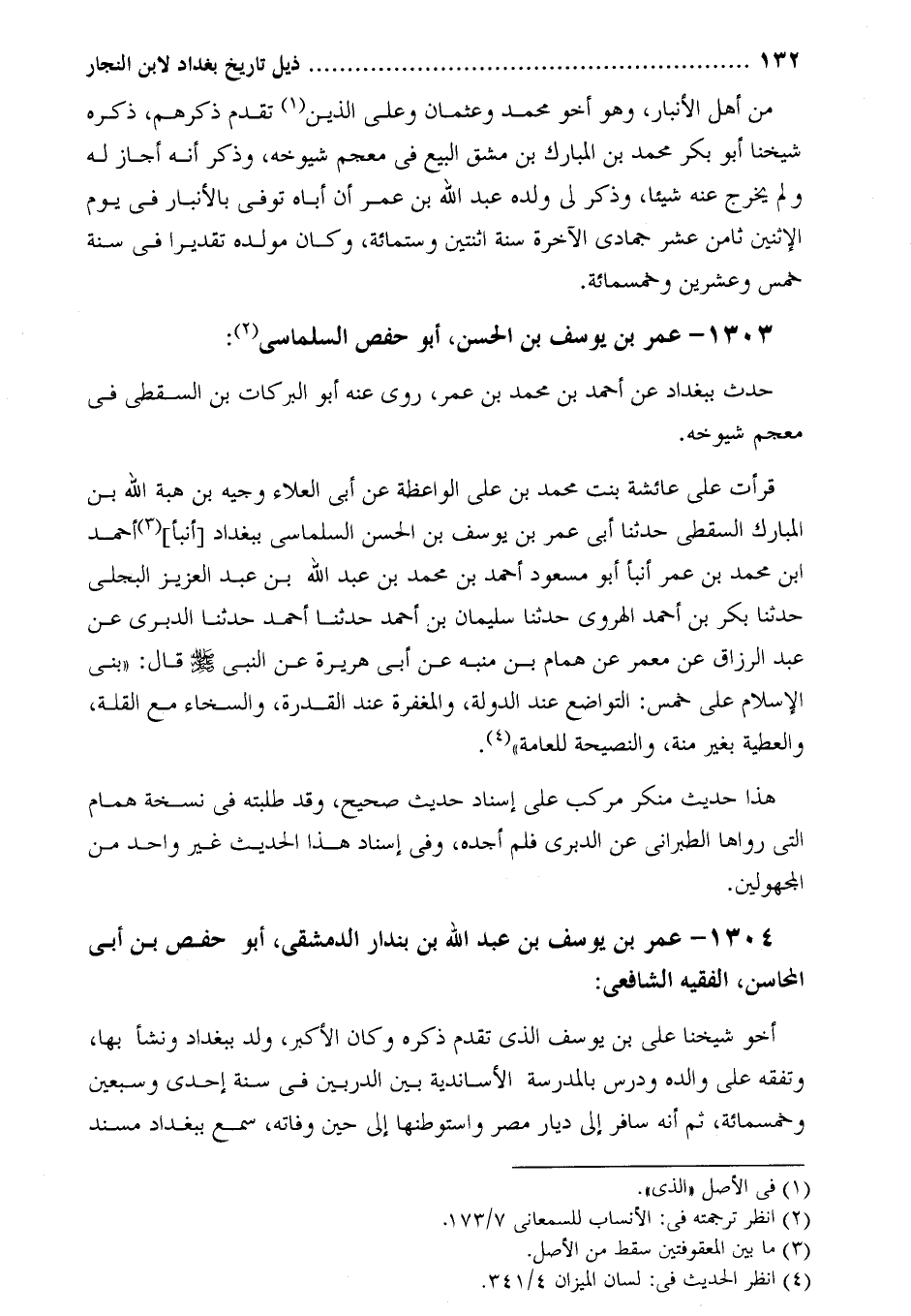 1304- عمر بن يوسف بن عبد الله بن بندار الدمشقي، أبو حفص بن أبى المحاسن، الفقيه الشافعي: