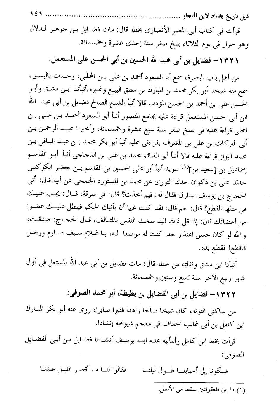 1321- فضائل بن أبى عبد الله الحسين بن أبى الحسن على المستعمل: