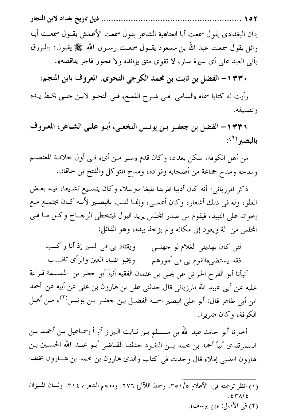 1330- الفضل بن ثابت بن محمد الكرجى النحوي، المعروف بابن المنجم: