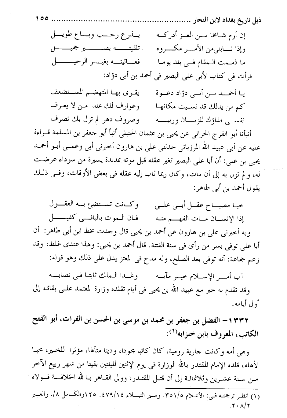1332- الفضل بن جعفر بن مُحَمَّد بن موسى بن الحسن بن الفرات، أبو الفتح الكاتب، المعروف بابن خنزابه [1] :
