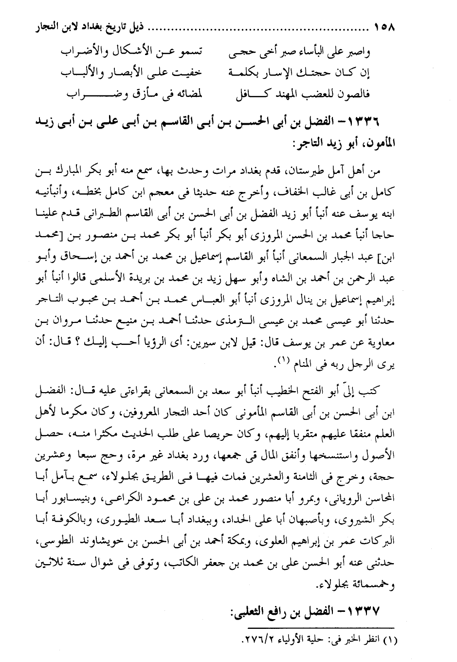 1336- الفضل بن أبى الحسن بن أبى القاسم بن أبى على بن أبى زيد المأمون، أبو زيد التاجر: