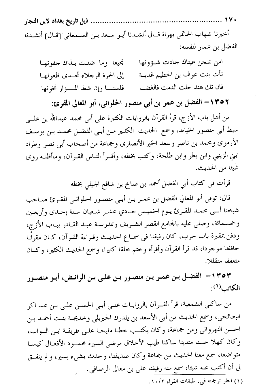 1353- الفضل بن عمر بن منصور بن على بن الرائض، أبو منصور الكاتب [1] :
