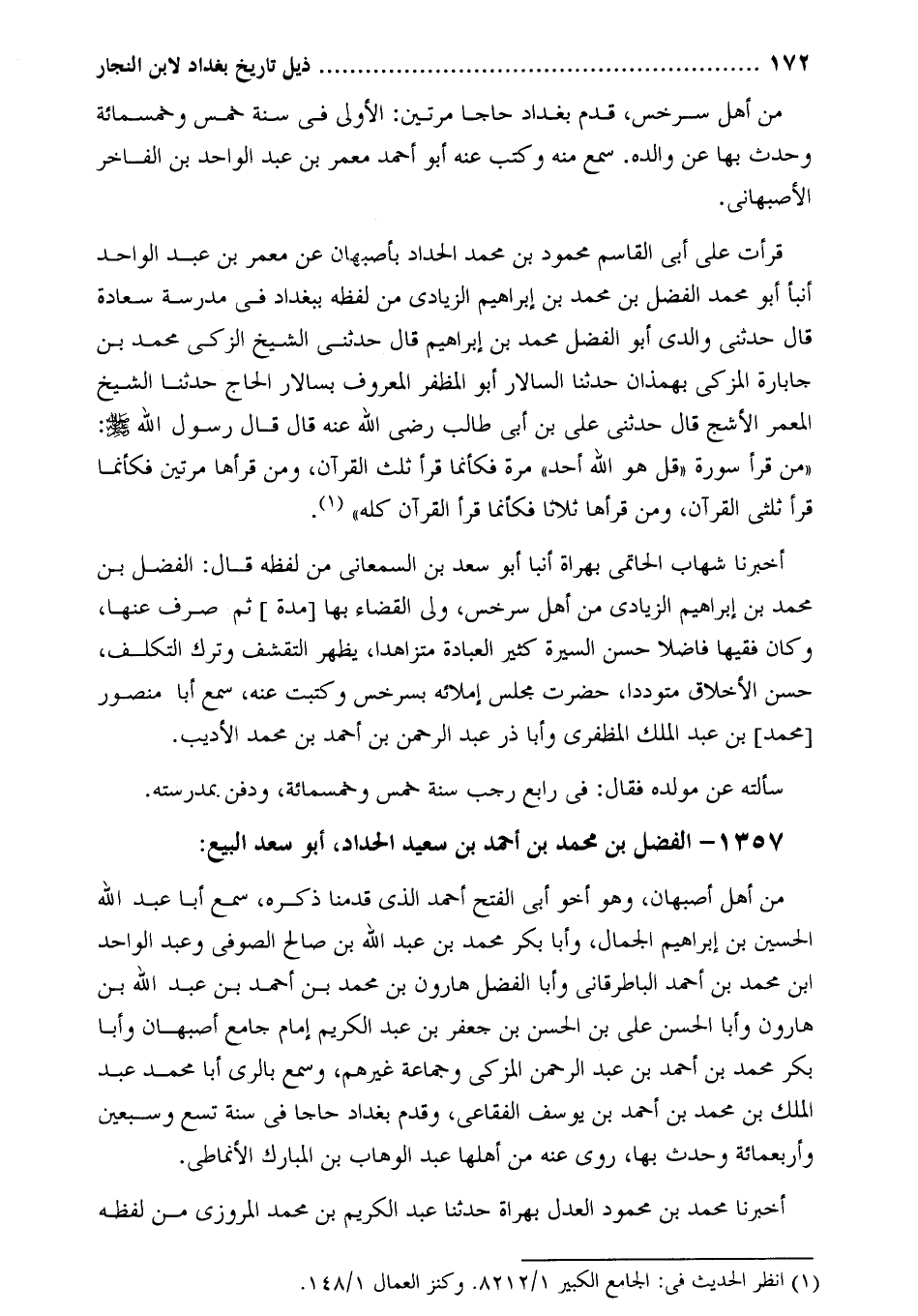 1357- الفضل بن محمد بن أحمد بن سعيد الحداد، أبو سعد البيع: