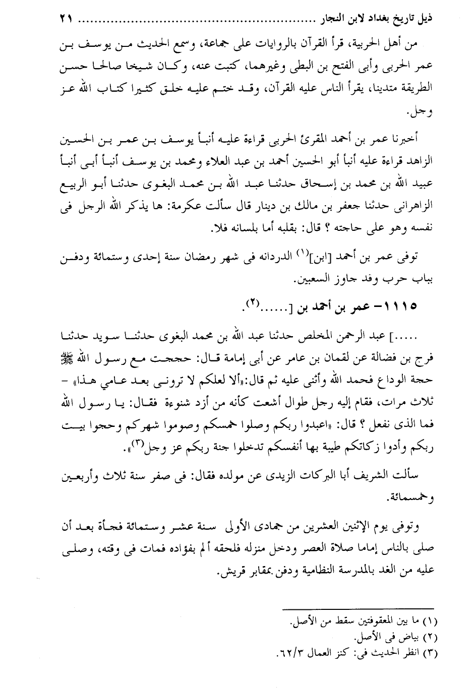 أخبرنا عمر بن أحمد المقرئ الحربي قراءة عليه أنبأ يوسف بن عمر بن الحسين الزاهد قِرَاءَةً عَلَيْهِ أَنْبَأَ أَبُو الْحُسَيْنِ أَحْمَدُ بْنُ عبد العلاء ومحمد بن يوسف أنبأ أبى أَنْبَأَ عُبَيْدُ اللَّهِ بْنُ مُحَمَّدِ بْنِ إِسْحَاقَ حدثنا عبد الله بن محمد البغوي حدثنا أبو الربيع الزاهراني حدثنا جعفر بن مالك بن دينار قال سألت عكرمة: ها يذكر الله الرجل في نفسه وهو على حاجته؟ قال: بقلبه أما بلسانه فلا.