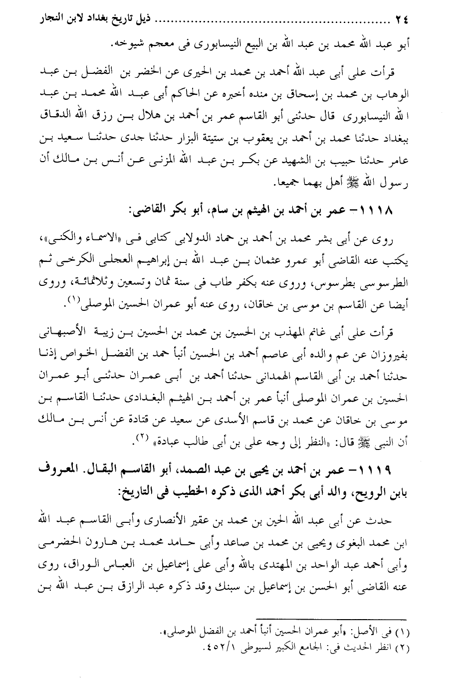 1119- عُمَر بْن أَحْمَدَ بْن يَحْيَى بْن عَبْد الصمد، أبو القاسم البقال. المعروف بابن الرويح، والد أبى بكر أحمد الذي ذكره الخطيب في التاريخ: