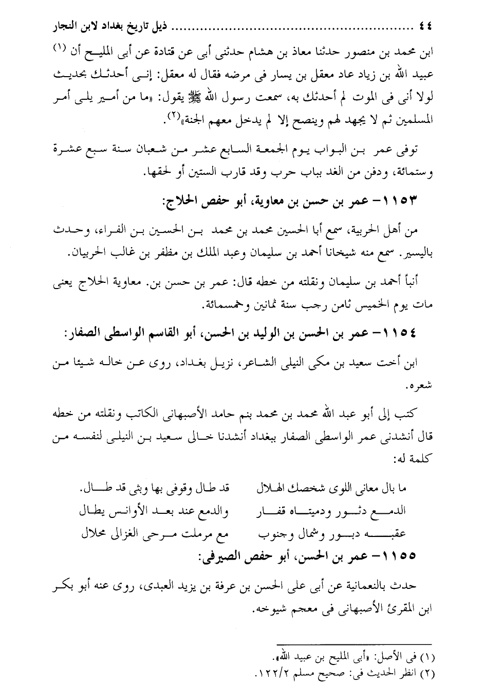 1153- عمر بن حسن بن معاوية، أبو حفص الحلاج: