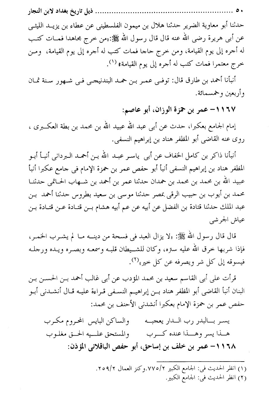 1168- عمر بن خلف بن إسحاق، أبو حفص الباقلاني المؤذن: