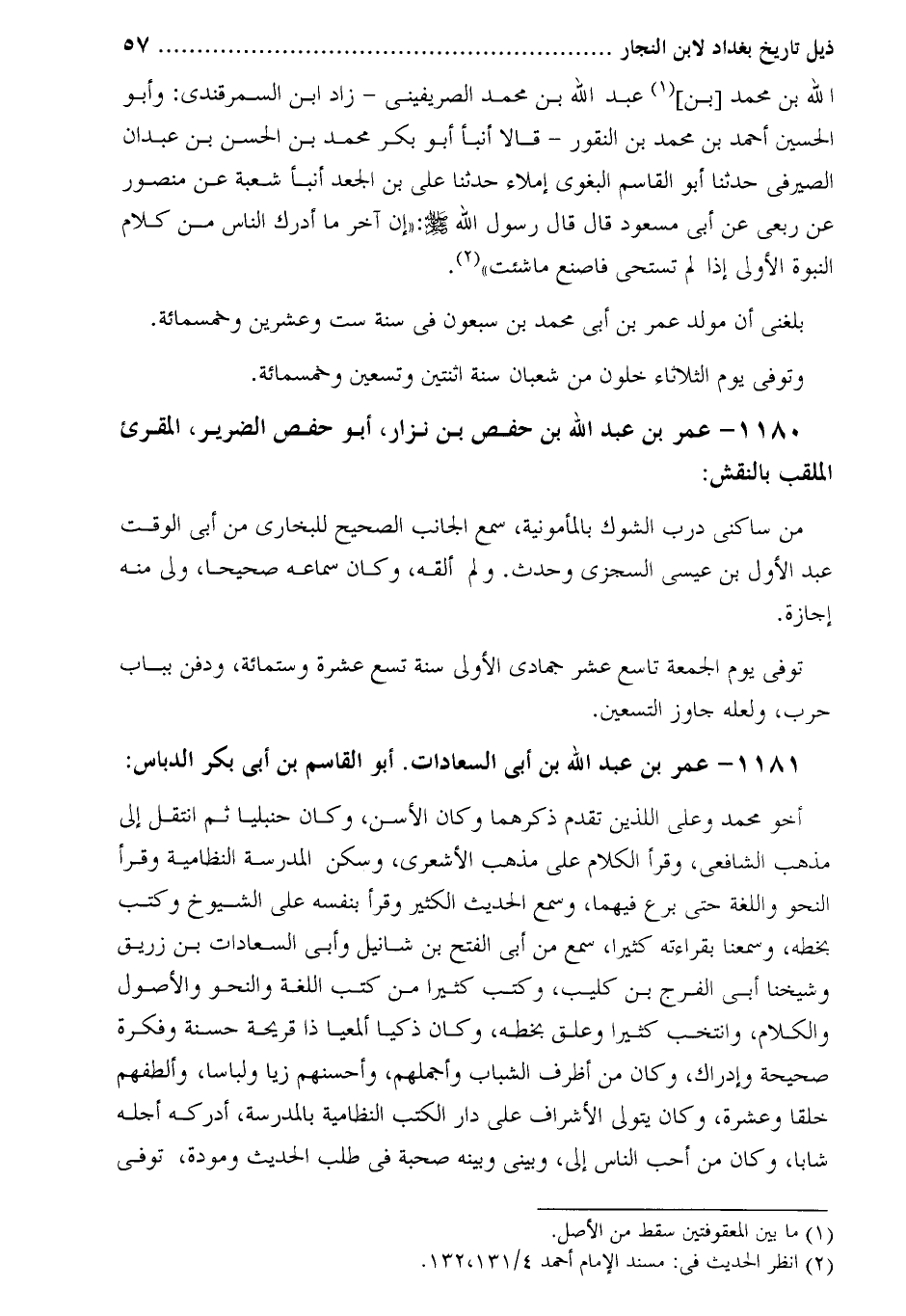1181- عمر بن عبد الله بن أبى السعادات. أبو القاسم بن أبى بكر الدباس: