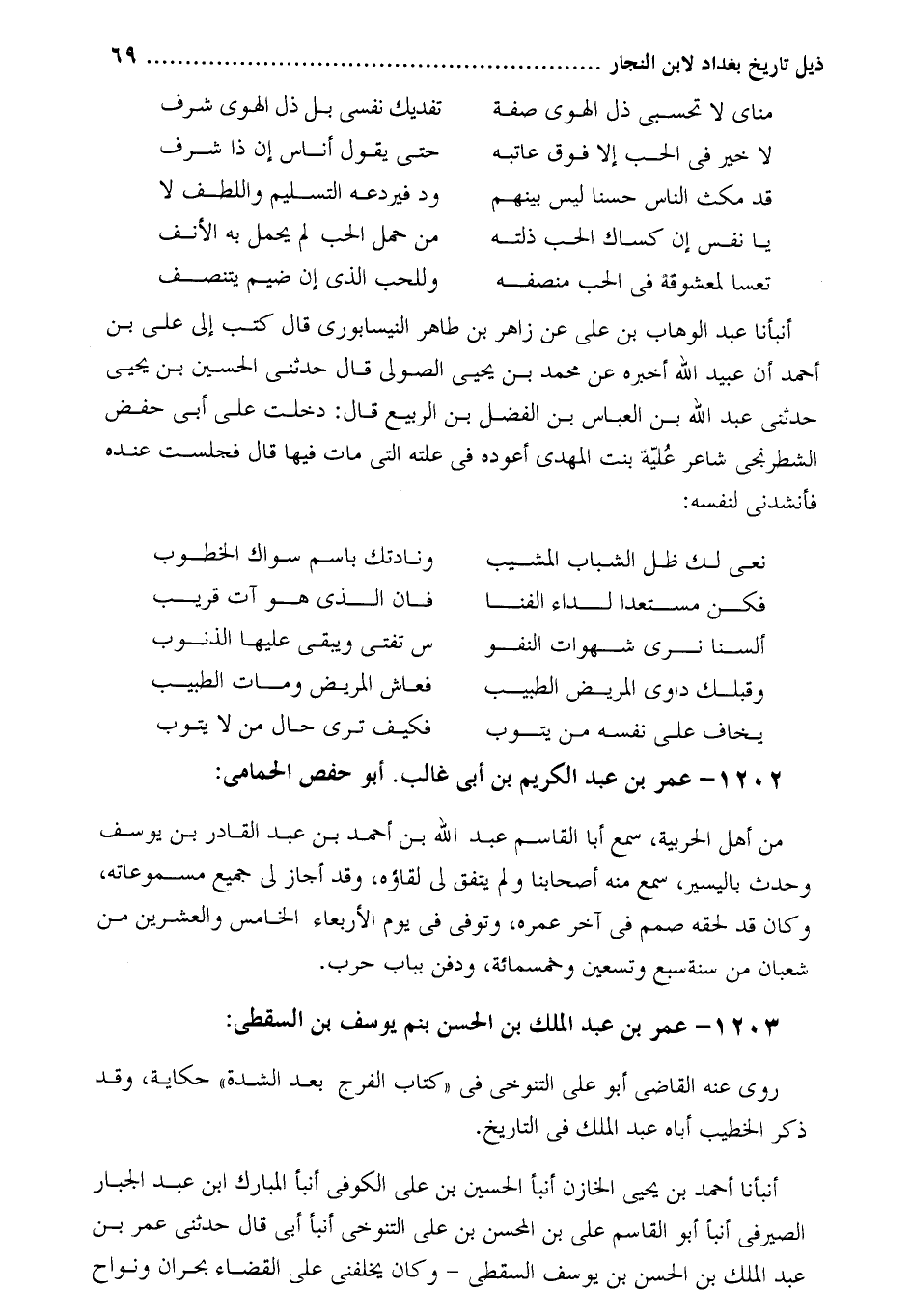 1203- عمر بن عبد الملك بن الحسن بنم يوسف بن السقطي: