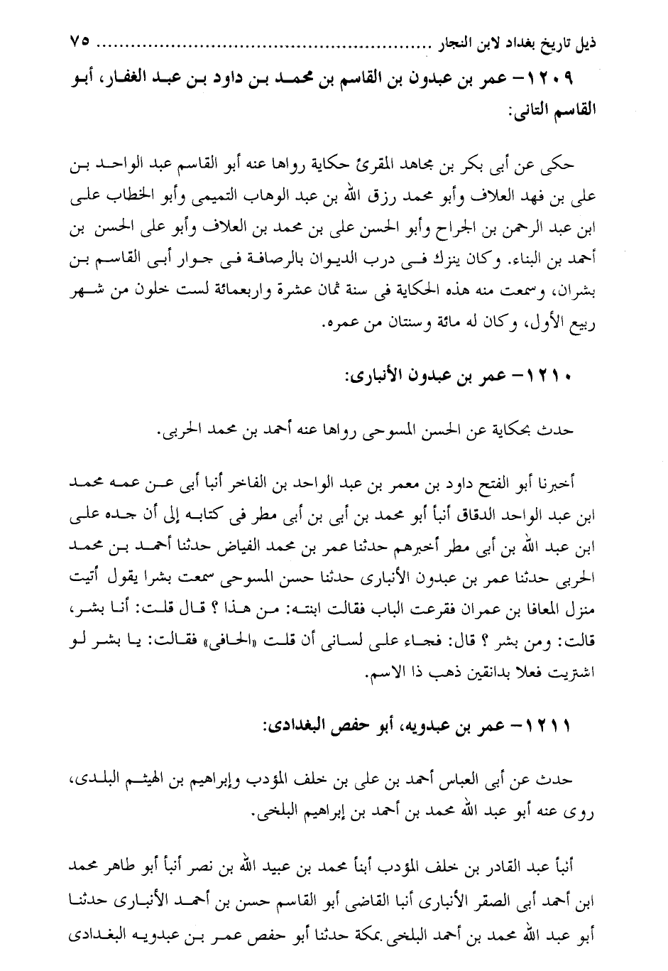 1211- عمر بن عبدويه، أبو حفص البغدادي: