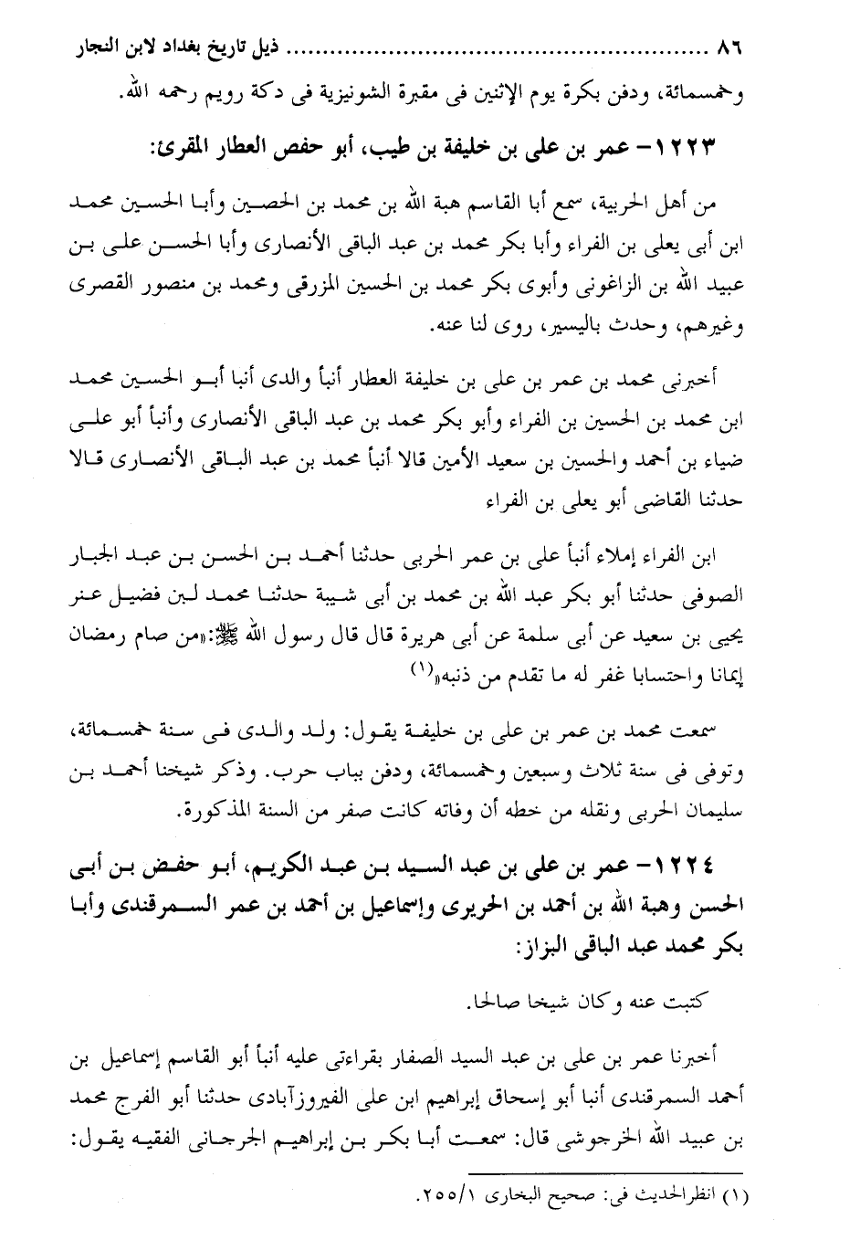 1224- عمر بن على بْن عَبْد السيد بْن عَبْد الكريم، أَبُو حفض بن أبى الحسن وهبة الله بن أحمد بن الحريري وإسماعيل بن أحمد بن عمر السمرقندي وأبا بكر محمد عبد الباقي البزاز: