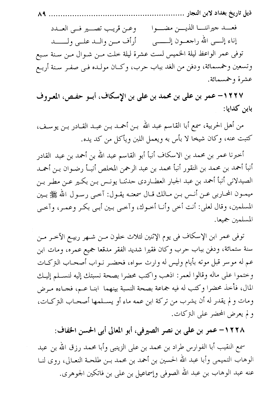 1227- عمر بْن عَلِيّ بْن مُحَمَّدِ بْنِ عَلِيّ بْن الإسكاف، أبو حفص، المعروف بابن كدايا: