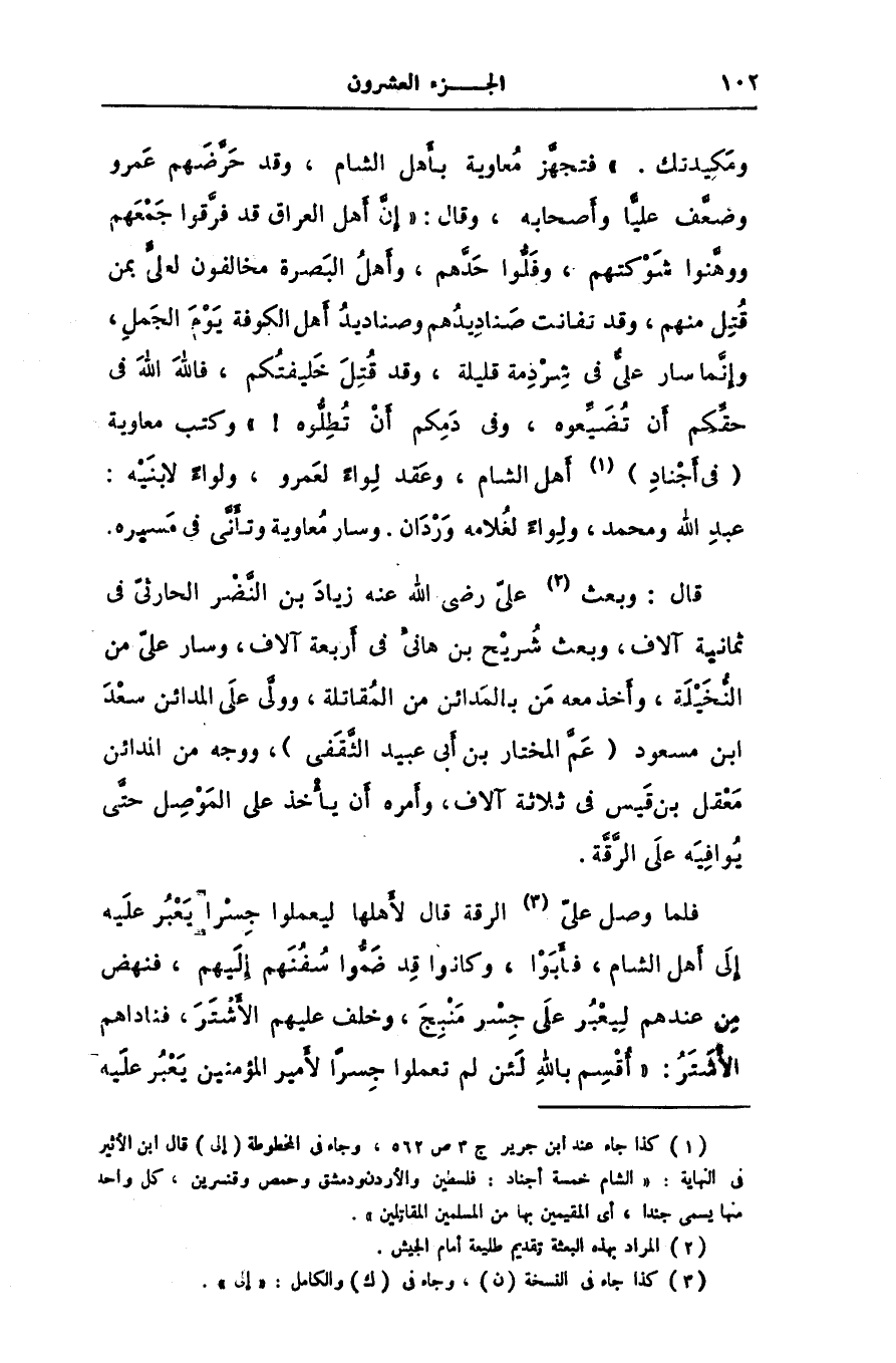 [1] كذا جاء عند ابن جرير ج 3 ص 562، وجاء فى المخطوطة (إلى) قال ابن الأثير فى النهاية: «الشام خمسة أجناد: فلسطين والأردن ودمشق وحمص وقنسرين، كل واحد منها يسمى جندا، أى المقيمين بها من المسلمين المقاتلين» .