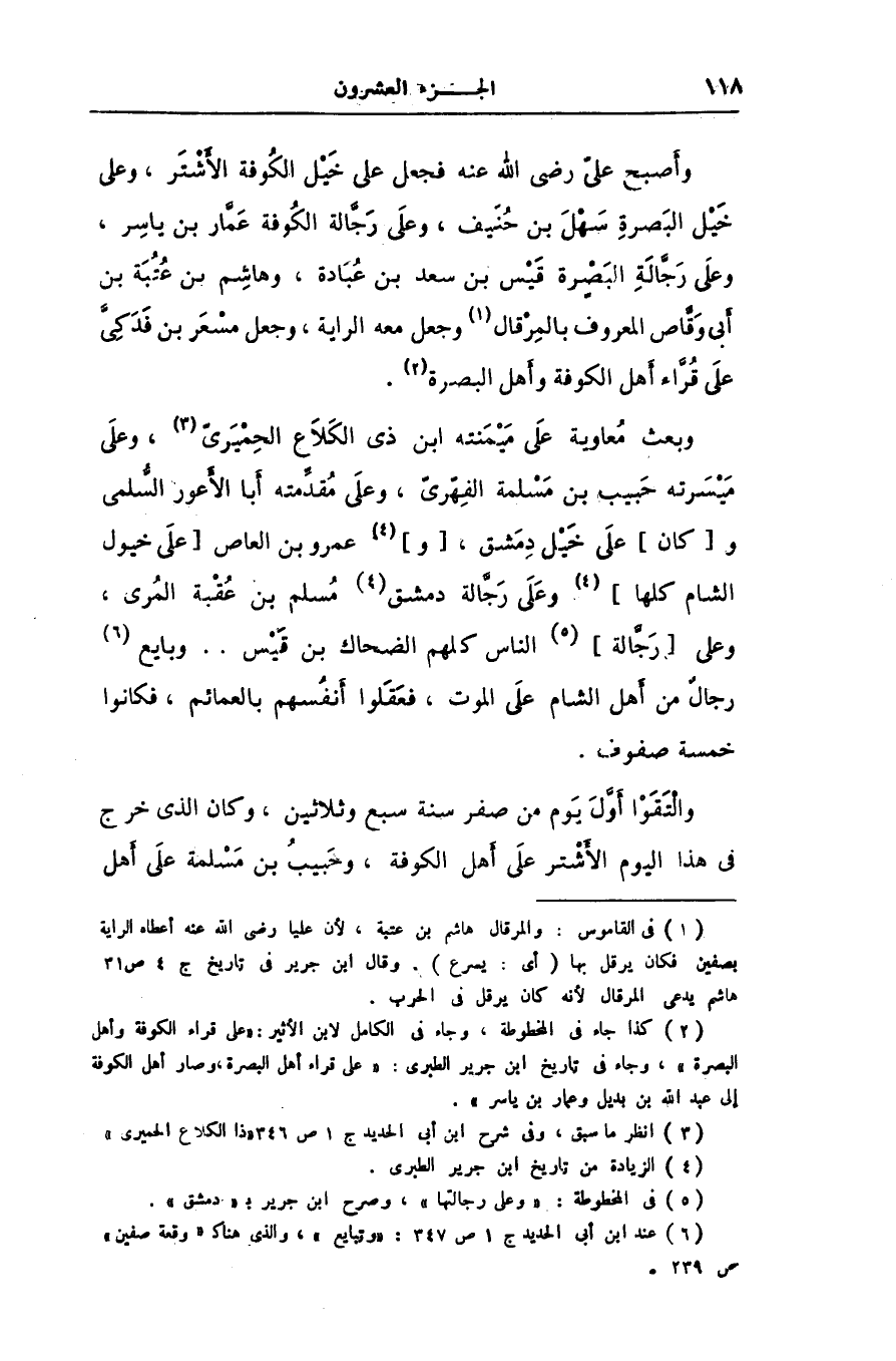 [2] كذا جاء فى المخطوطة، وجاء فى الكامل لابن الأثير: «على قراء الكوفة وأهل البصرة» ، وجاء فى تاريخ ابن جرير الطبرى: «على قراء أهل البصرة، وصار أهل الكوفة إلى عبد الله بن بديل وعمار بن ياسر» .