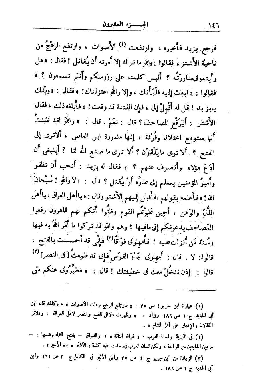 [3] الزيادة من ابن جرير ج 4 ص 35 وابن الأثير فى الكامل ج 3 ص 161 وابن أبى الحديد ج 1 ص 186.