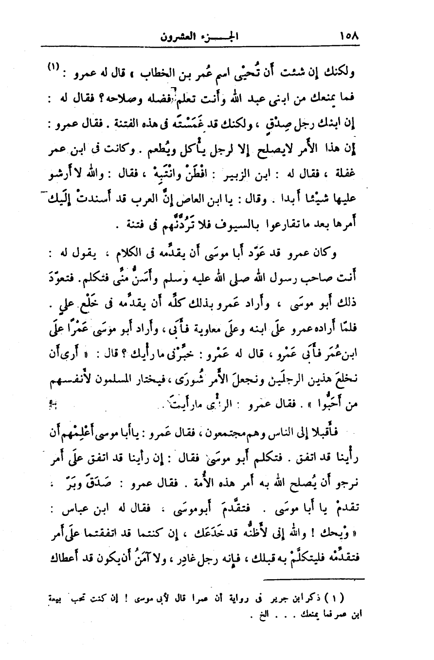 [1] ذكر ابن جرير فى رواية أن عمرا قال لأبى موسى! إن كنت تحب بيعة ابن عمر فما يمنعك ... الخ.