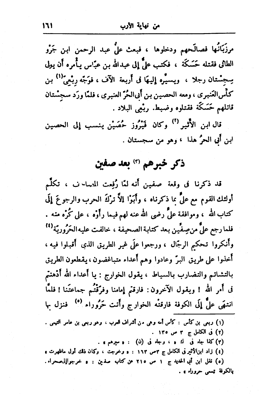 قد ذكرنا فى وقعة صفين أنه لمّا رفعت المصاحف، تكلّم أولئك القوم مع علىّ بما ذكرناه، وأبوا إلّا ترك الحرب والرجوع إلى كتاب الله، وموافقة علىّ رضى الله عنه لهم فيما رأوه، على كره منه.