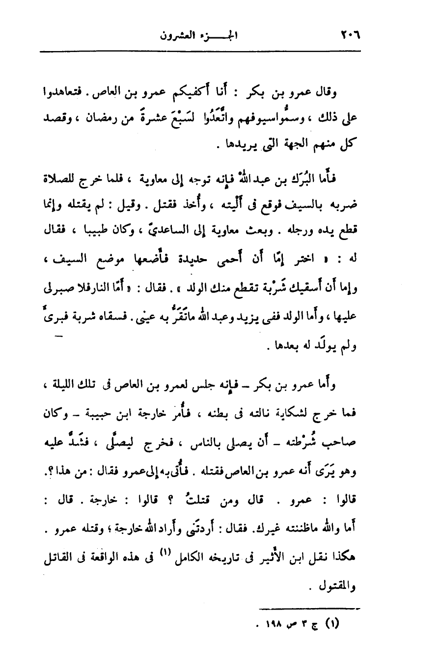 وقال عمرو بن بكر: أنا أكفيكم عمرو بن العاص. فتعاهدوا على ذلك، وسمّوا سيوفهم واتّعدوا لسبع عشرة من رمضان، وقصد كل منهم الجهة التى يريدها.