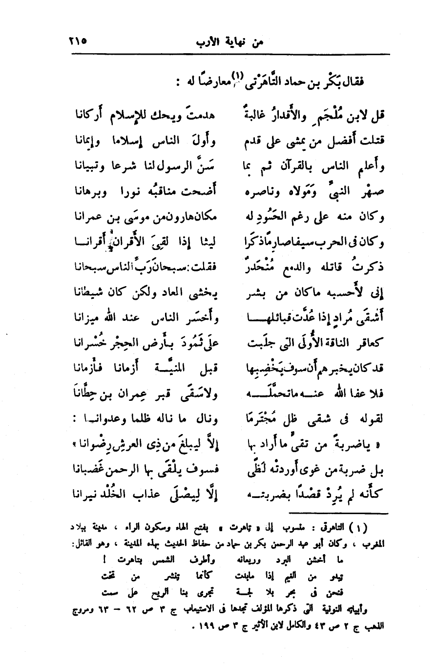 [1] التاهرتى: منسوب إلى «تاهرت» بفتح الهاء وسكون الراء، مدينة ببلاد المغرب، وكان أبو عبد الرحمن بكر بن حماد من حفاظ الحديث بهذه المدينة، وهو القائل: