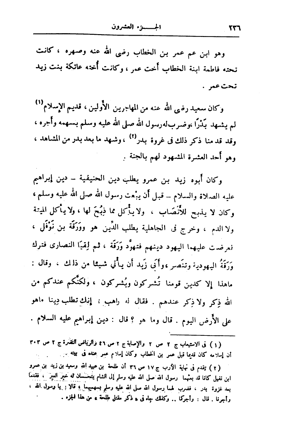 [2] تقدم فى نهاية الأرب ج 17 ص 36 أن طلحة بن عبيد الله وسعيد بن زيد بن عمرو ابن نفيل كانا قد بعثهما رسول الله صلى الله عليه وسلم إلى الشام يتحسان له خبر العير، فقدما بعد غزوة بدر، فضرب لهما رسول الله صلى الله عليه وسلم بسهميهما، قالا: يا رسول الله، وأجرنا. قال: وأجركما.. وكذلك جاء فى «ذكر مقتل طلحة» من هذا الجزء.