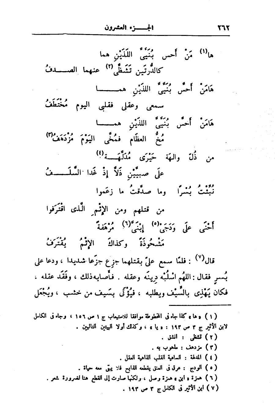[1] «ها» كذا جاء فى المخطوطة موافقا للاستيعاب ج 1 ص 156، وجاء فى الكامل لابن الأثير ج 3 ص 193: «يا» ، وكذلك أولا البيتين التاليين.