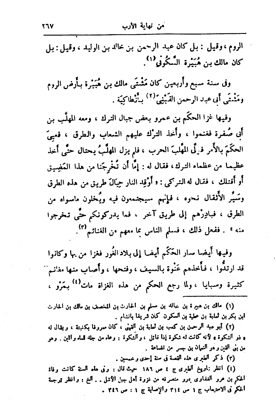 [4] انظر تاريخ الطبرى ج 4 ص 186 حيث قال: وفى هذه السنة كانت وفاة الحكم بن عمرو الغفارى بمرو منصرفه من غزوة أهل جبل الأشل.. الخ: وانظر ترجمة الحكم فى الاستيعاب ج 1 ص 314 والإصابة ج 1: ص 346.