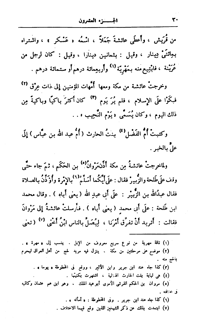 ولما خرجت عائشة من مكة أذّن مروان [5] بن الحكم، ثم جاء حتّى وقف على طلحة والزّبير فقال: على أيّكما أسلّم [6] بالإمرة وأؤذّن بالصلاة فقال عبد الله بن الزّبير: على أبى عبد الله (يعنى أباه) . وقال محمد ابن طلحة: على أبى محمد (يعنى أباه) . فأرسلت عائشة إلى مروان فقالت: أتريد أن تفرّق أمرنا، ليصلّ بالناس ابن أختى [7] (تعنى