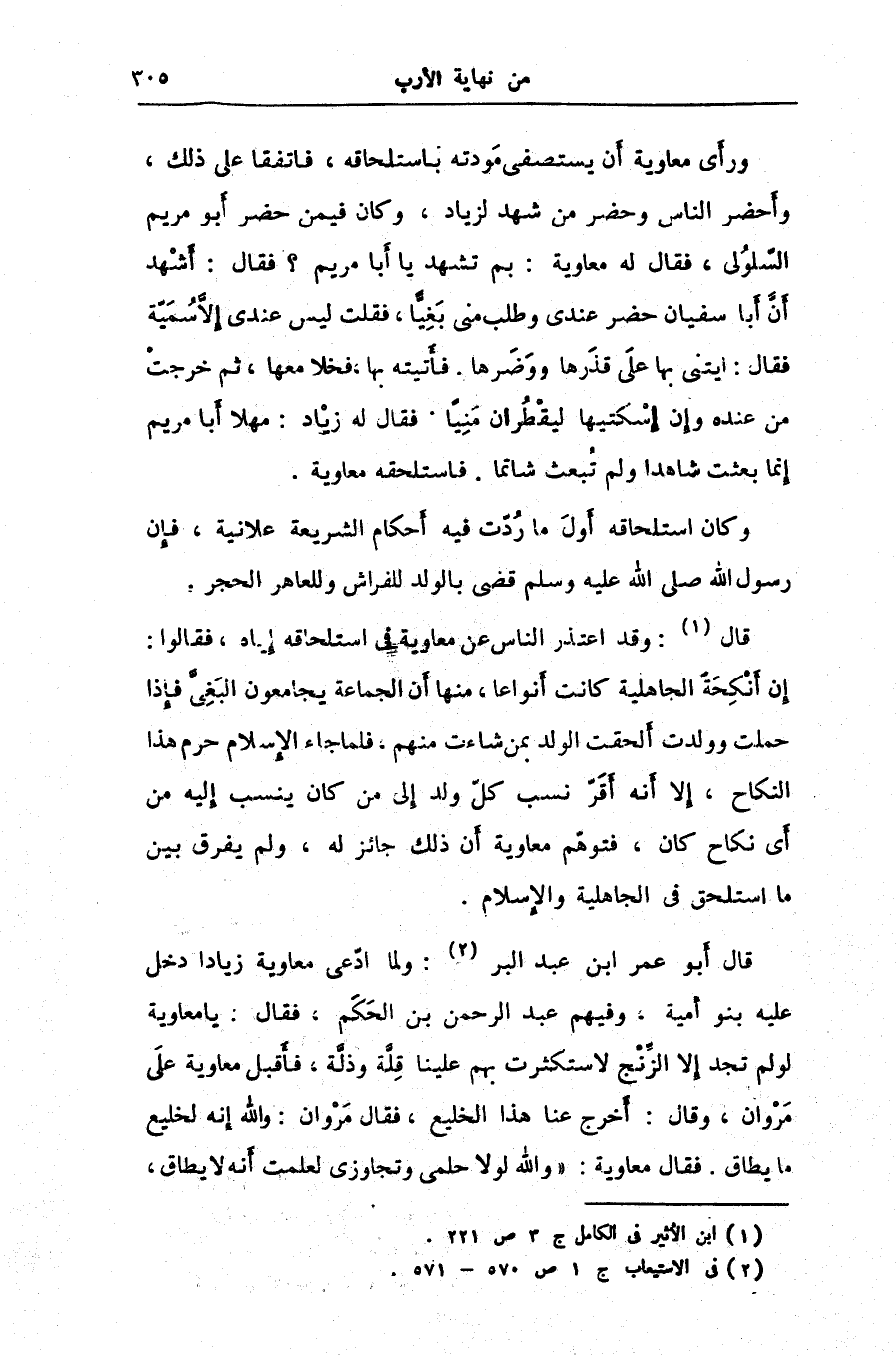 إن أنكحة الجاهلية كانت أنواعا، منها أن الجماعة يجامعون البغىّ فإذا حملت وولدت ألحقت الولد بمن شاءت منهم، فلما جاء الإسلام حرم هذا النكاح، إلا أنه أقرّ نسب كلّ ولد إلى من كان ينسب إليه من أى نكاح كان، فتوهّم معاوية أن ذلك جائز له، ولم يفرق بين ما استلحق فى الجاهلية والإسلام.