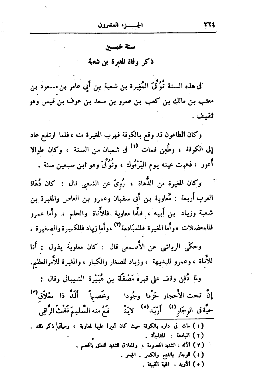 فى هذه السنة توفّى المغيرة بن شعبة بن أبى عامر بن مسعود بن معتب بن مالك بن كعب بن عمرو بن سعد بن عوف بن قيس وهو ثقيف.