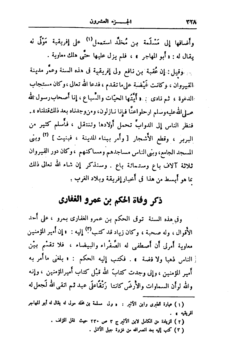 [1] عبارة الطبرى وابن الأثير: «ولى مسلمة بن مخلد مولى له يقال له أبو المهاجر افريقيه» .