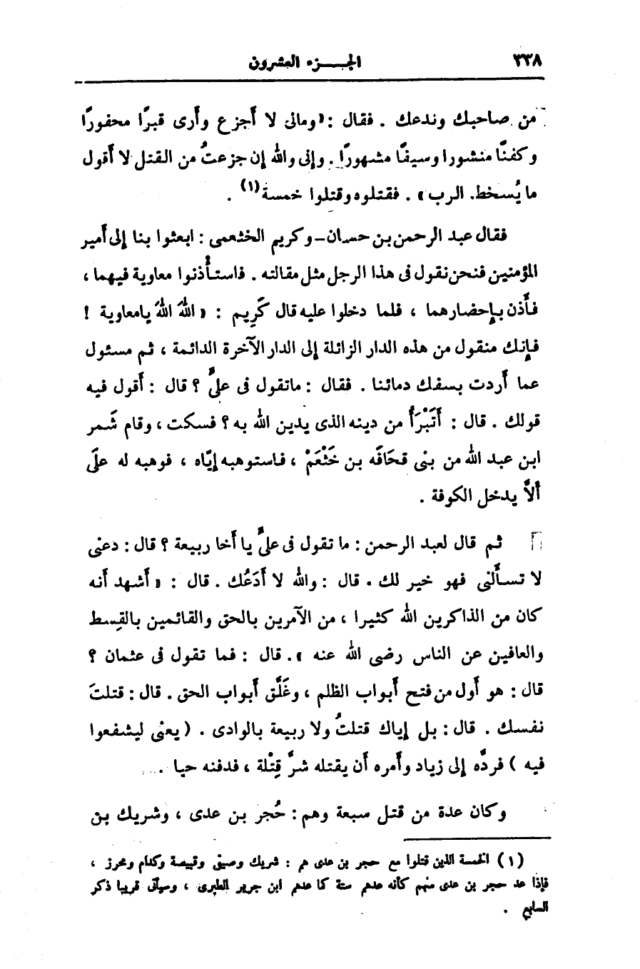 [1] الخمسة الذين قتلوا مع حجر بن عدى هم: شريك وصيق وقبيصة وكدام ومحرز، فإذا عد حجر بن عدى منهم كأنه عدهم ستة كما عدهم ابن جرير الطبرى، وسيأتى قريبا ذكر السابع.