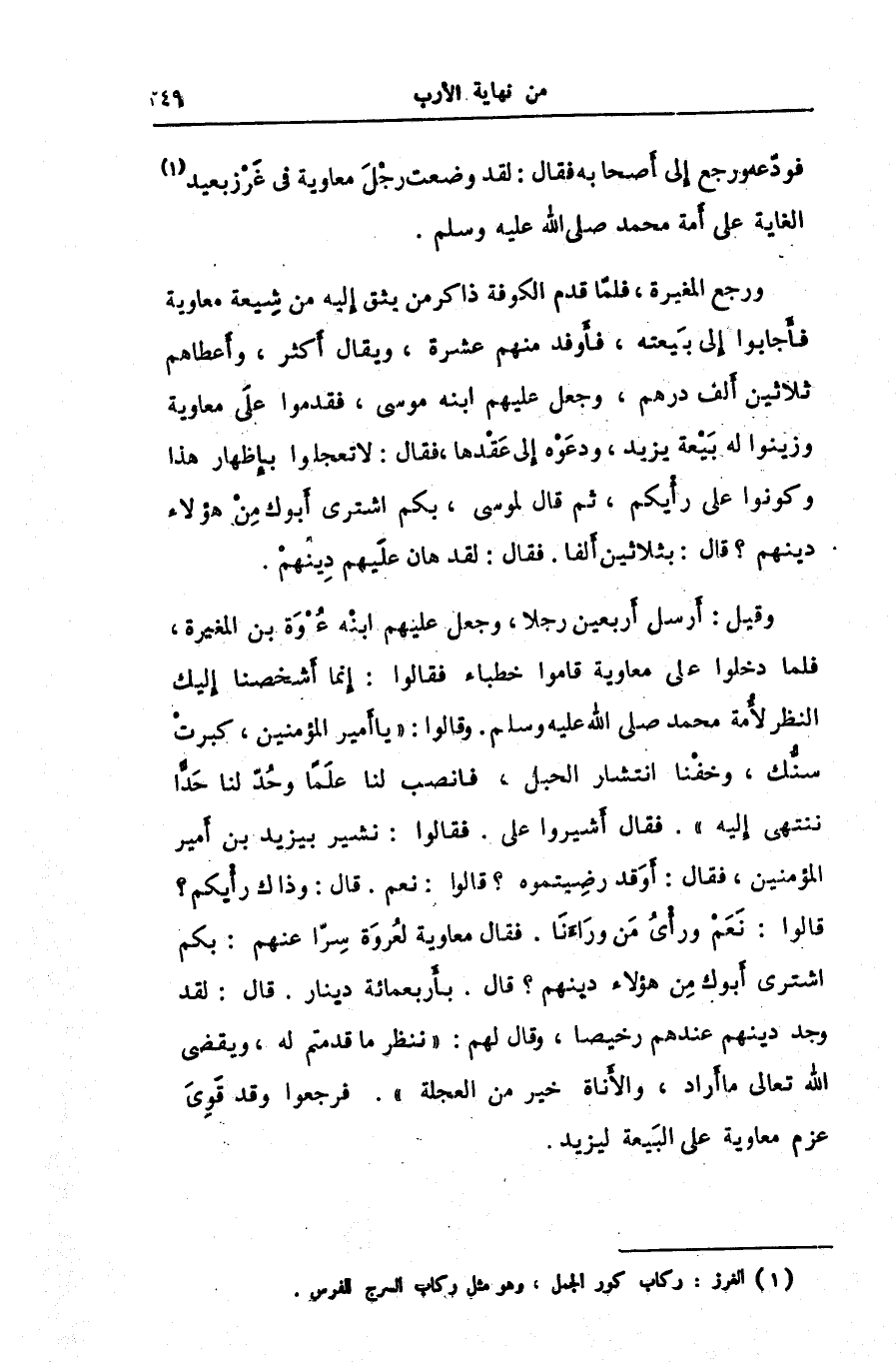 قالوا: نعم ورأى من وراءنا. فقال معاوية لعروة سرّا عنهم: بكم اشترى أبوك من هؤلاء دينهم؟ قال. بأربعمائة دينار. قال: لقد وجد دينهم عندهم رخيصا، وقال لهم: «ننظر ما قدمتم له، ويقضى الله تعالى ما أراد، والأناة خير من العجلة» . فرجعوا وقد قوى عزم معاوية على البيعة ليزيد.