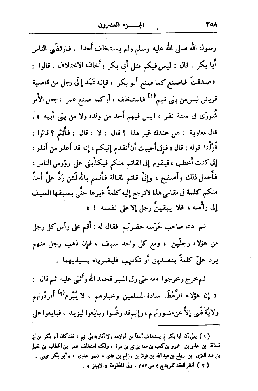 [1] يعنى أن أبا بكر لم يستخلف أحدا من أولاده ولا أقاربه بنى تيم، فقد كان أبو بكر بن أبى قحافة بن عامر بن عمرو بن كعب بن سعد بن تيم بن مرة، ولكنه استخلف عمر بن الخطاب بن نفيل بن عبد العزى بن رباح بن عبد الله بن قرظ بن رزاح بن عدى، فعمر عدوى، وأبو بكر تيمى.
