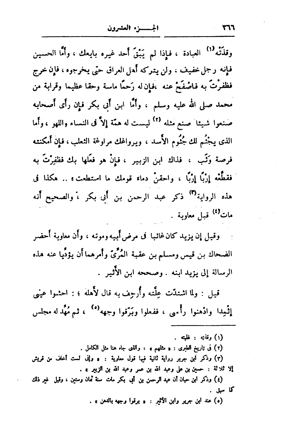 [3] وذكر ابن جرير رواية ثانية فيها قول معاوية: «وإنى لست أخاف من قريش إلا ثلاثة: حسين بن على وعبد الله بن عمر وعبد الله بن الزبير» .